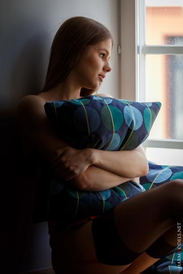 Evelina in Charm Models set On the window in red lingerie