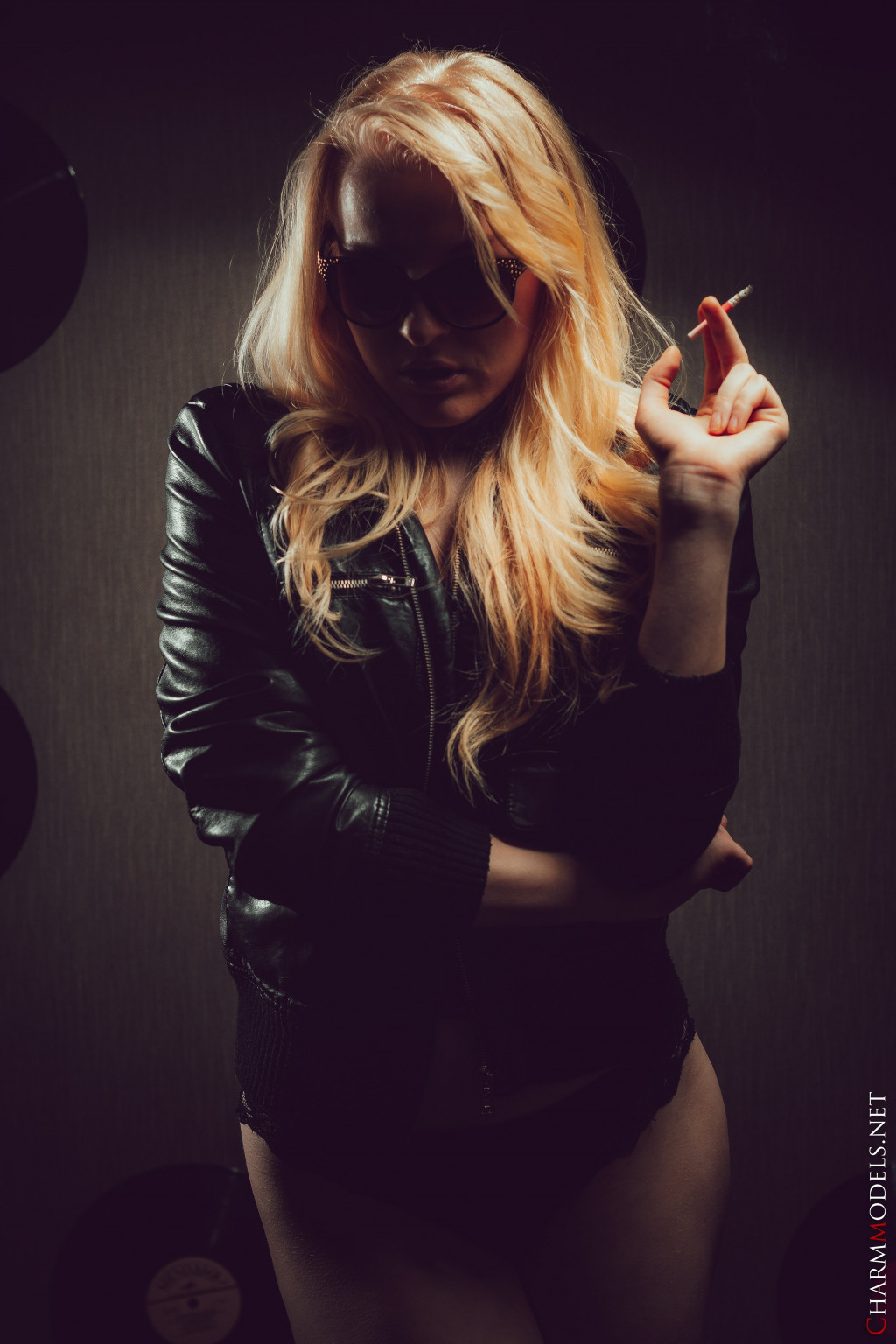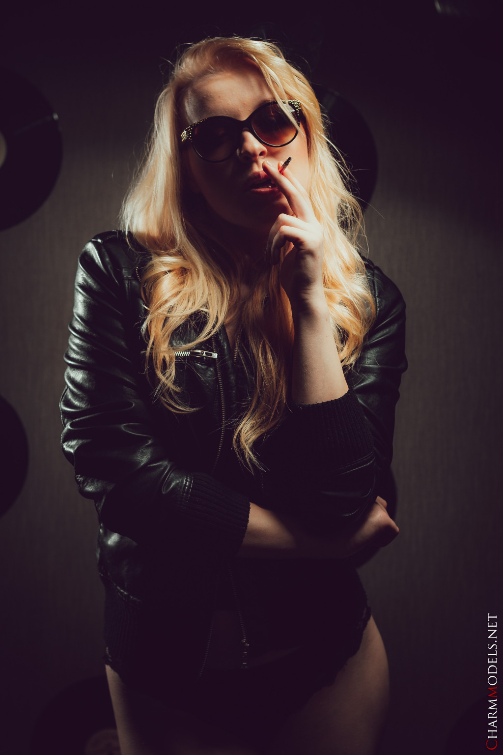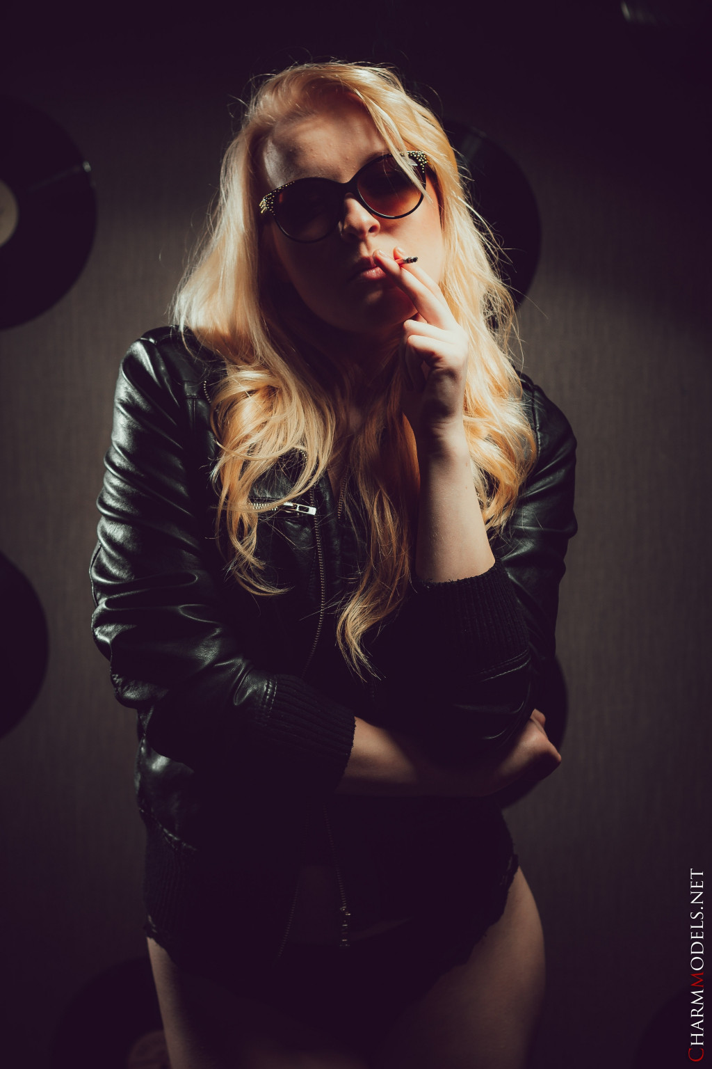 Leila in Charm Models set Leather Jacket And Cigarette