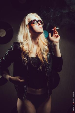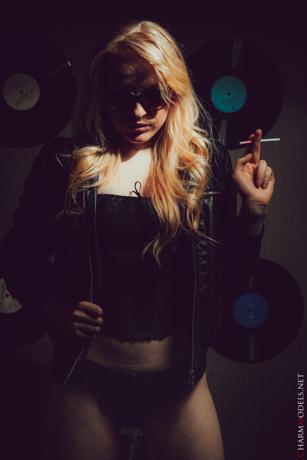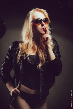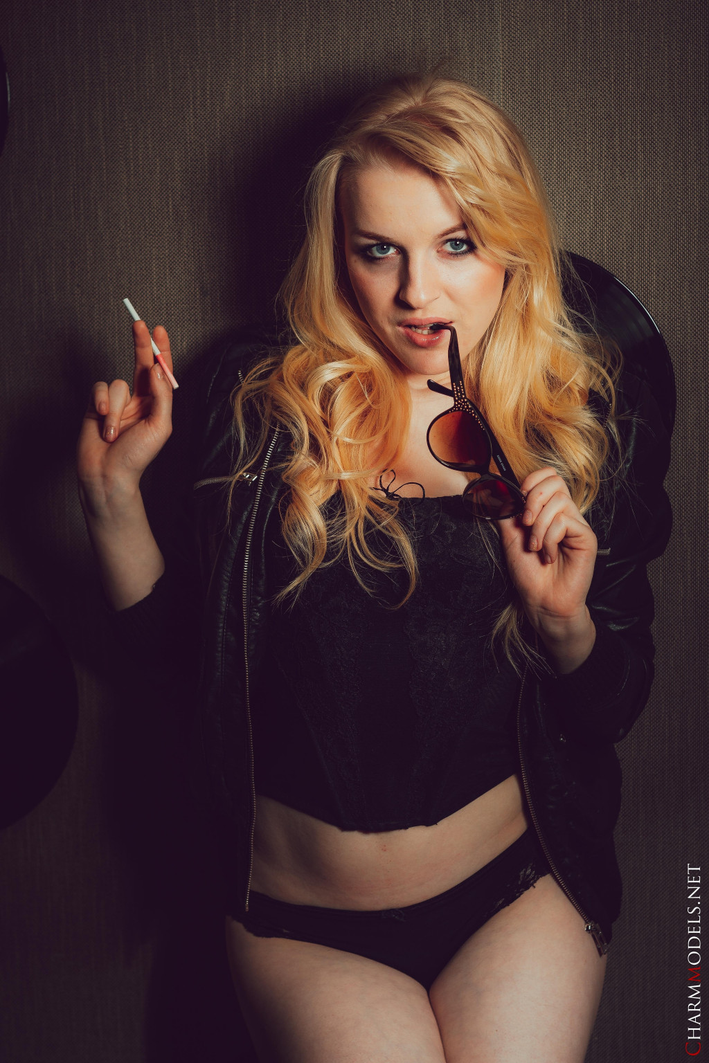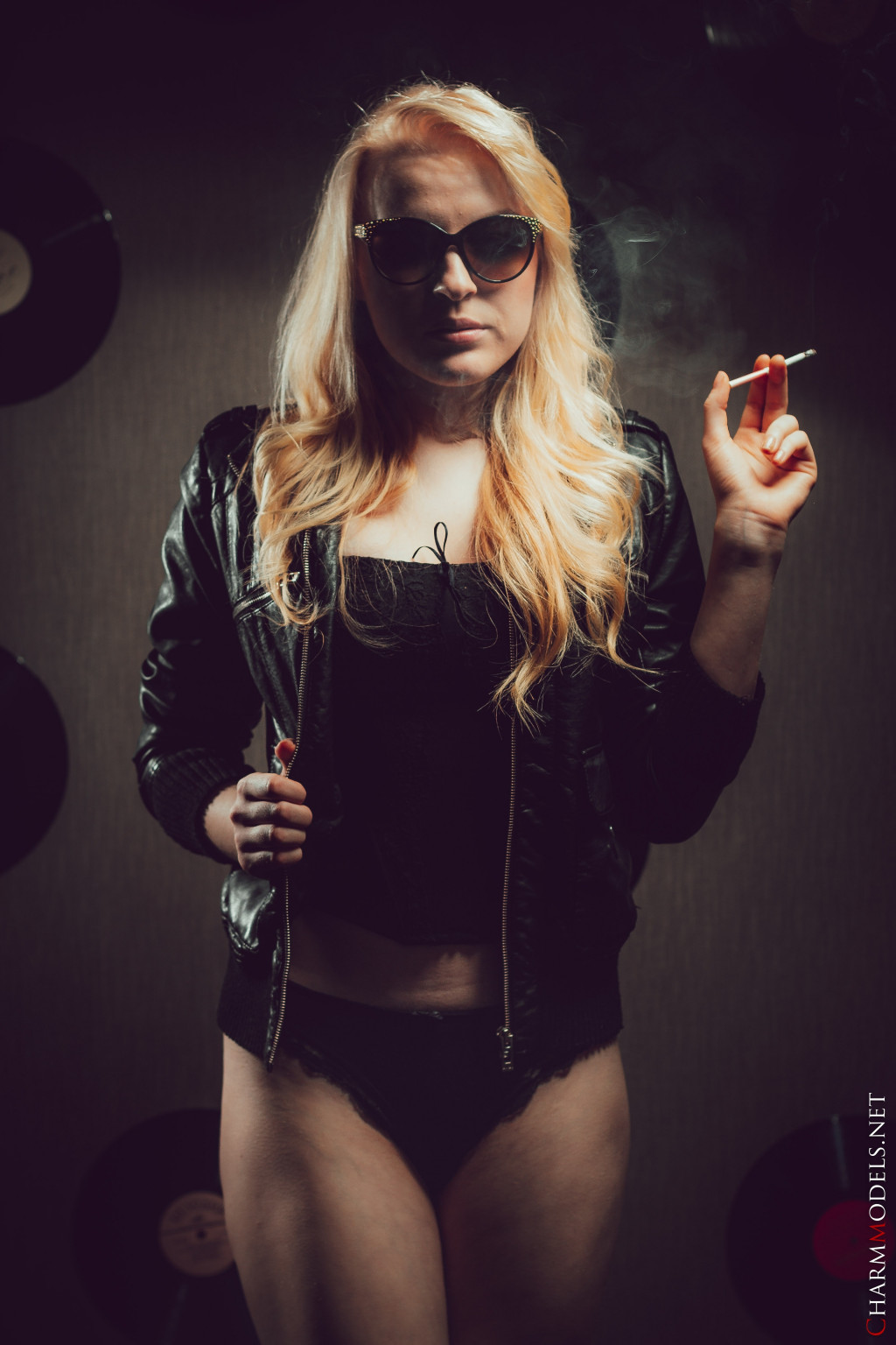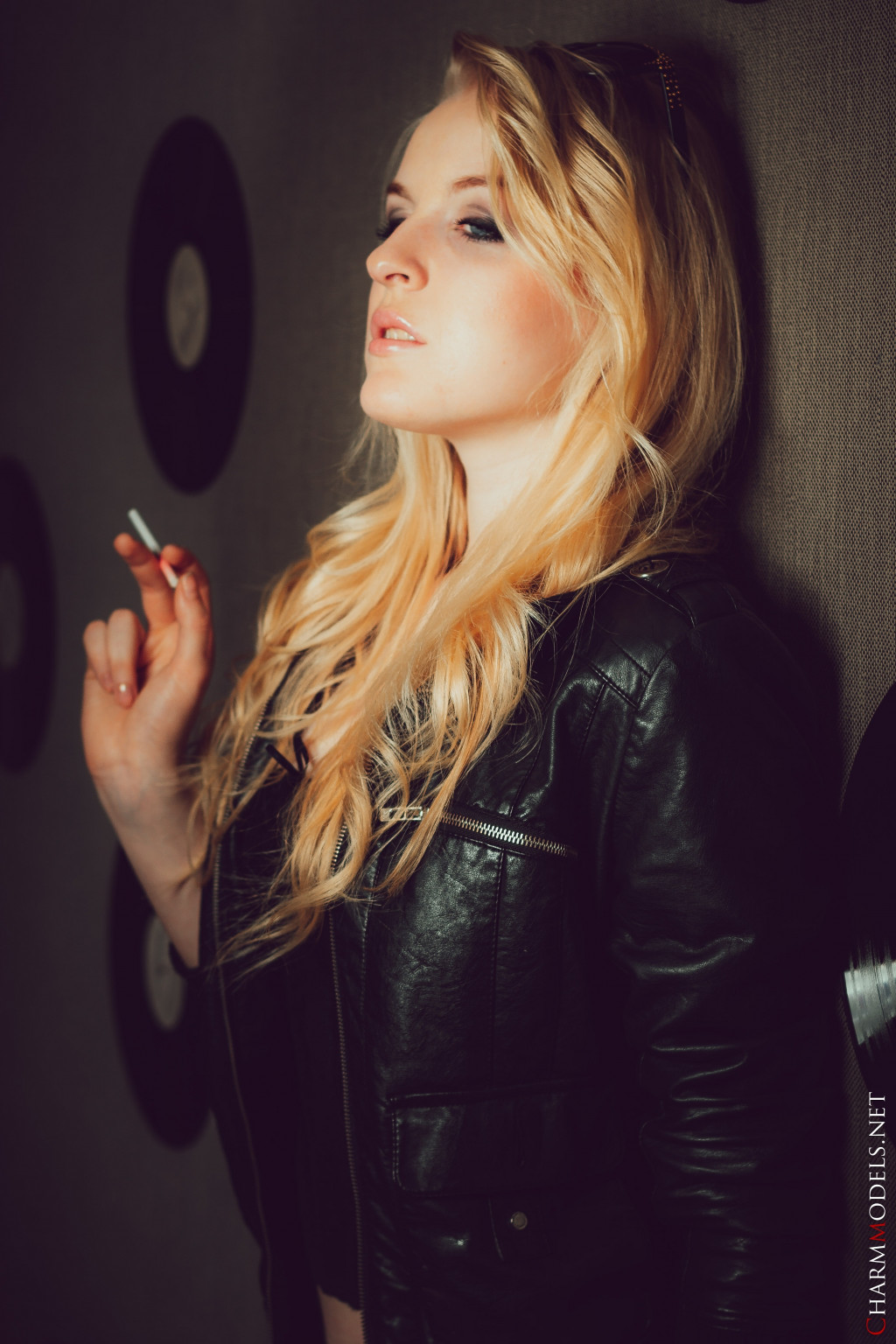 Leila in Charm Models set Leather Jacket And Cigarette