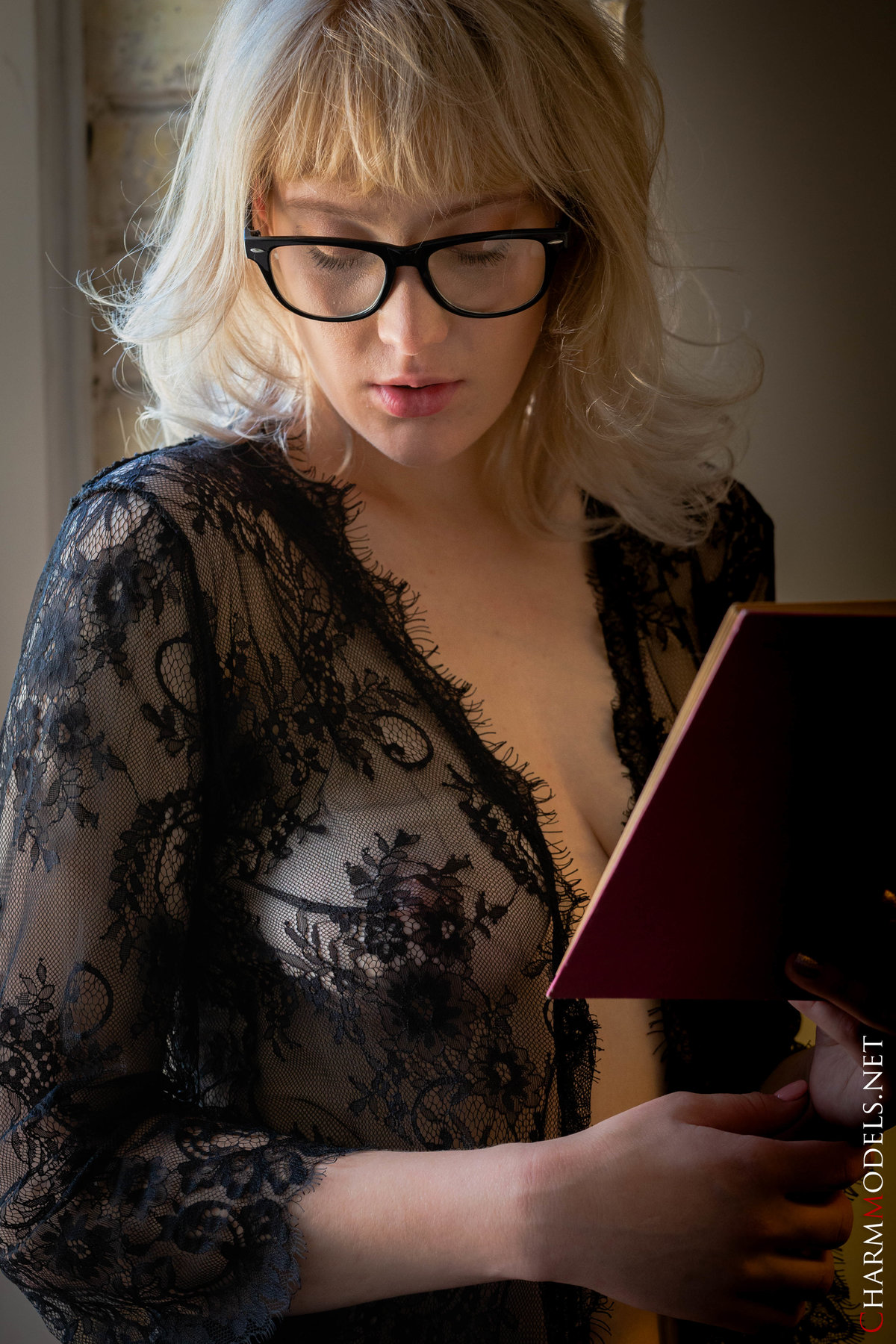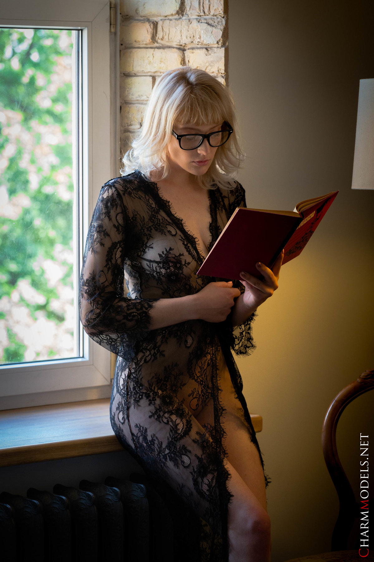 Limona in Charm Models set Reads Book In Sexy Transparent Lingerie