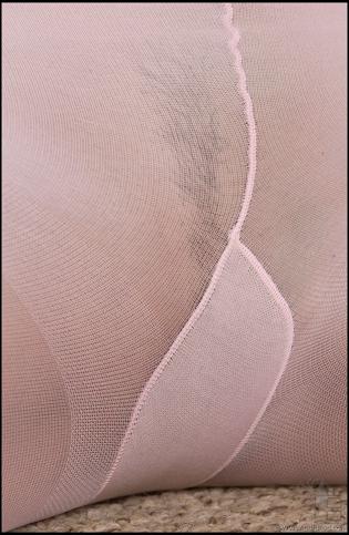 Kristina U in Art Lingerie set Pink Bra Panties Sheer Stockings